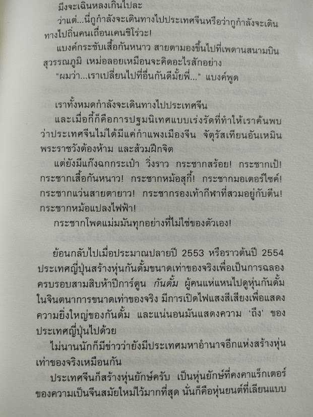 เฟี้ยวตั้งแต่ชื่อเรื่อง จะมีหนังสือสักกี่เล่มที่ชื่อยาวขนาดนี้ เป็นการเล่าประสบการณ์ท่องเที่ยวประเทศจีนที่ตลกมาก การใช้ภาษาสำนวนประกอบบทสนทนาทำให้เรื่องราวที่ดูไม่มีอะไรดูน่าสนใจขึ้นมา ซึ่งถ้ารู้แบบนี้ไม่น่าดองไว้ซะนานซื้อมาเมื่อ 3 ปีที่แล้วมั้ง เออ แต่ต้องบอกก่อนว่าหนังสือเล่มนี้พิมพ์ครั้งแรกเมื่อปี 2554 มันก็สิบกว่าปีมาแล้ว ประเทศจีนตอนนี้อาจจะไม่เหมือนในหนังสือแล้วก็ได้