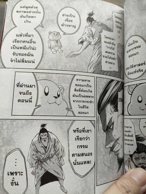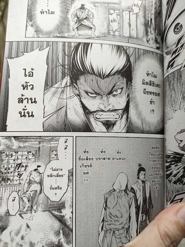ตอนอ่านเล่ม 1 ก็มีความงงแต่ยังพอรู้เรื่อง พอเข้าใจพล็อตประมาณว่าย้อนเวลาไปเปลี่ยนแปลงประวัติศาสตร์ แต่พออ่านเล่ม 2 เรื่องมันเยอะไปหมด มีคนยกทัพมา มีตัวละครมากขึ้น ยิ่งตอนที่โนบุนางะบอกว่าไม่มีปราสาทนี้ในเกียวโตมาก่อน แล้วก็ตัดไปในปราสาทมีตัวละครเล่นมุกกัน เราเริ่มรู้สึกไม่เก็ทอย่างแรง เหมือนมังงะจะบอกว่า เอ้า! นี่ประวัติศาสตร์เปลี่ยนแปลงไปเยอะมากนะ พลิกหน้ามือเป็นหลังเท้าเลย ตกใจมั้ยล่ะ เราก็ยังรู้สึก อืมๆ เหรอ ถ้าเป็นเรื่องที่เรารู้ดีอย่างกรุงศรีแตก ชาวบ้านบางระจัน พระนเรศวร คงจะสนุกแน่เลย ไม่รู้เรื่องมากเกินไป คิดว่าไม่ไปต่อกับเรื่องนี้ดีกว่า